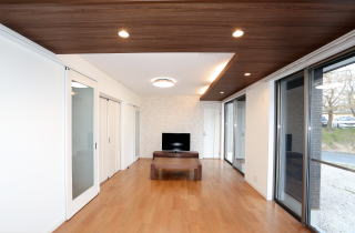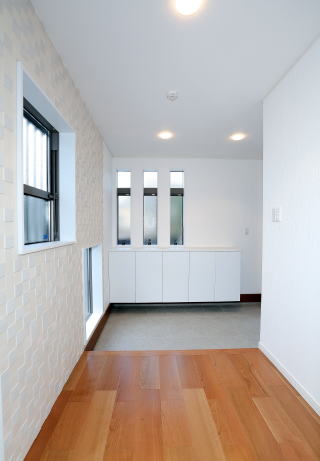 観デザインは視覚的に建物をより大きく認識されるよう考慮されています。そのため木造2階建てとは思えないデザインです。内部はLDKを中心にすべてが機能するような間取りにしてあります。また2階には小さなお子様の成長に合わせ収納が必要になることから屋根裏やロフトを最大限利用できるよう工夫を施しました。1階LDKは床暖房を施工し快適な温かさを実現し、太陽光発電は日中の電気使用量を補い、さらに売電までしています。閑静な住宅地の中にある住宅です。白を基調としたおしゃれな内装が特長です。